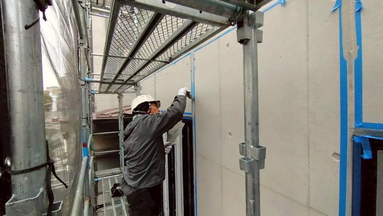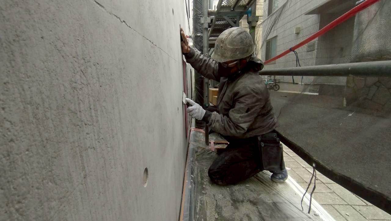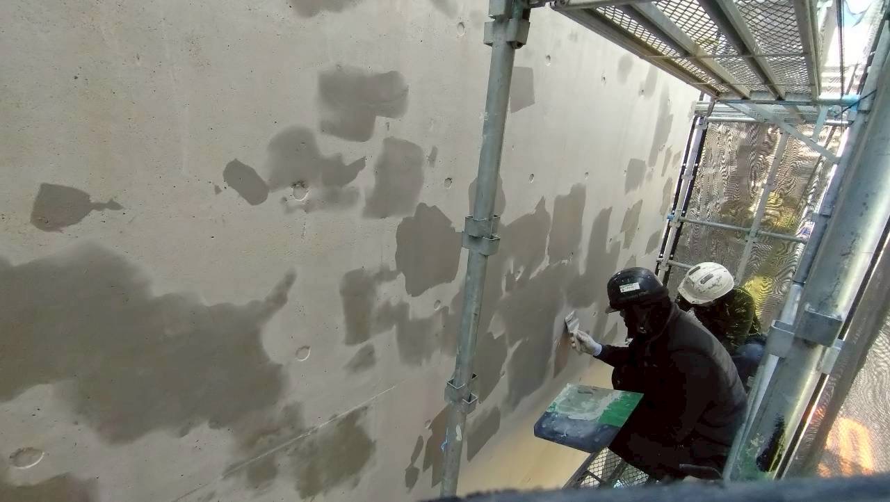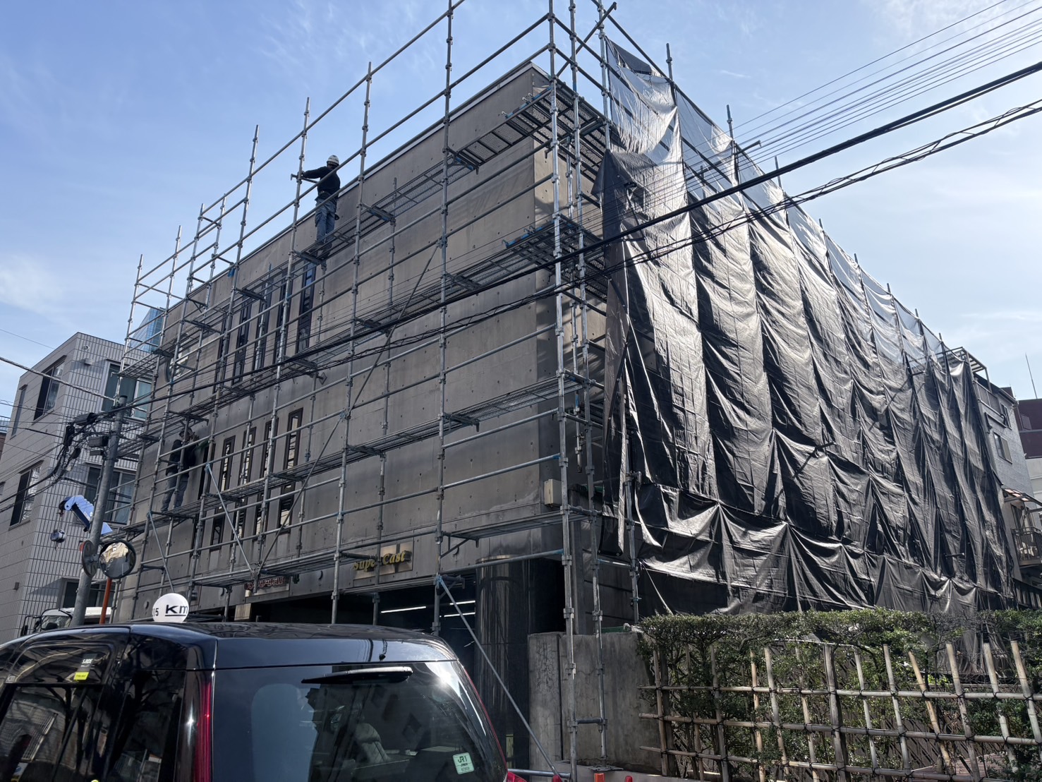 昨年施工させて頂きました、デジタル・ラボラトリー様の本社ビルと社員寮の塗装工事を2月施工させて頂いています(*^^*)道路幅や敷地が狭い為、仮設足場の組立作業が一気に出来ないので奥の寮から日を分けて順次に進めています。先日3/9に本社ビルの正面側とガレージ内側の仮設足場を組立ました。正面は高級車や通行人が飛び交う道路面の為、作業にも気配りが必須(>_<)専務自ら誘導員となり作業完了を見守りました!塗装は長野のデジラボ様と同様SA工法で仕上げます。奥の寮と本社ビルの奥はほぼ完成(^^)新築コンクリートの様に綺麗になりました✨全体の完成が楽しみですね(*≧∀≦*)