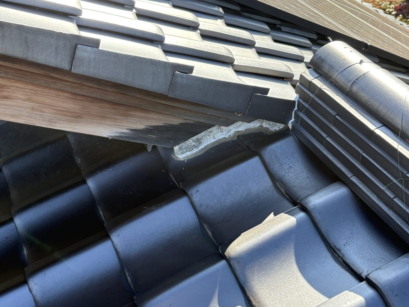 『外壁のひび割れと屋根の雨漏りを見て欲しい』とお問い合わせ頂きましたL様邸の屋根上の写真です。屋根は瓦ですが築15年も経つと棟瓦のズレや凍害による瓦割れ・破風板との取り合いなどによる雨漏りの発生や外壁も築15年経つと下地の動きや地震による外壁のひび割れなど、しっかり調査すると多くあります。高所で危険な箇所の調査は管理部あやながドローンで撮影・調査します。 有限会社永井塗装 長野ショールーム 管理部